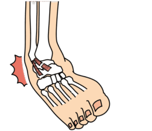 足首を内側に捻ると、足首の外側に症状がでやすくなります