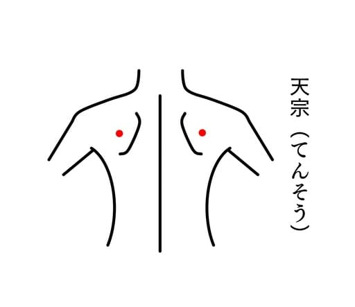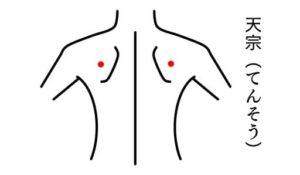 肩甲骨の真上(天宗というツボ)の圧痛や硬結があります