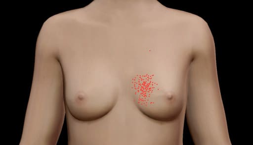 乳房の腫れ・発赤・痛みがある局所へ針をする際には
