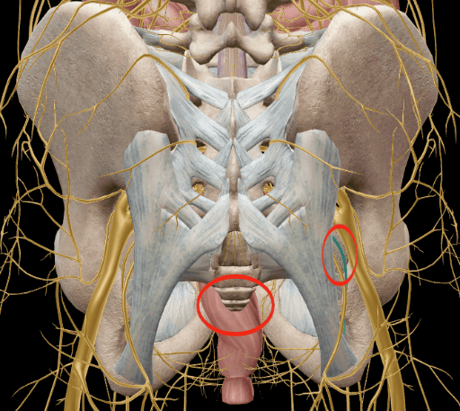 また、尾骨の際から直腸の近くへ針を入れていきます