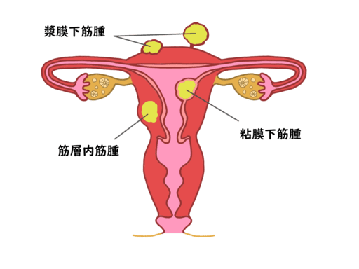 子宮筋腫は基本的に3つの場所にできやすいといわれており、「漿膜下筋腫(しょうまくかきんしゅ)」「筋層内筋腫(きんそうないきんしゅ)」「粘膜下筋腫(ねんまくかきんしゅ)」になります